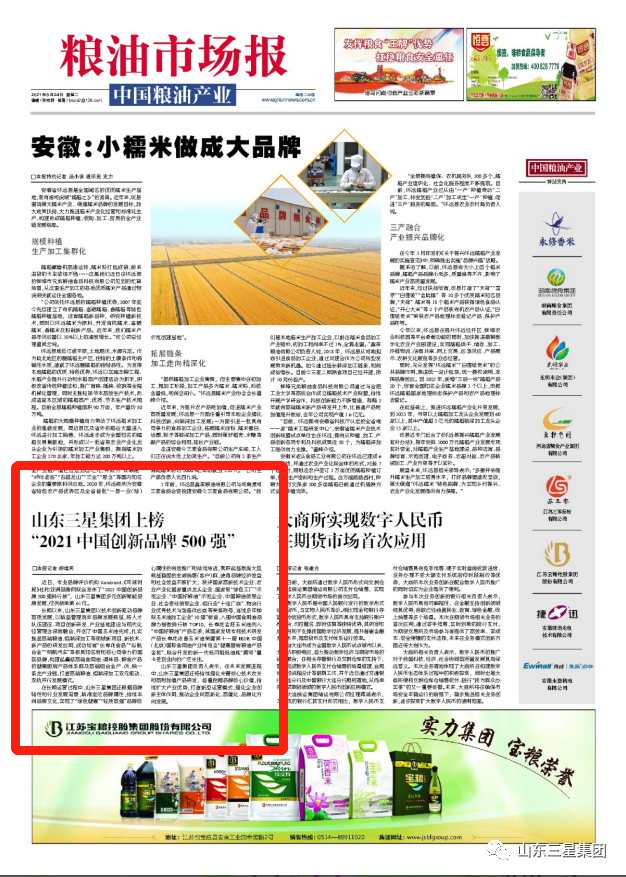 山東三星集團(tuán)負(fù)責(zé)人表示,未來,山東三星集團(tuán)將繼續(xù)聚焦實(shí)業(yè),做精主業(yè),拓寬創(chuàng)新思維,增強(qiáng)創(chuàng)新能力和核心競(jìng)爭(zhēng)力,推進(jìn)綠色低碳發(fā)展、數(shù)字化轉(zhuǎn)型發(fā)展,以產(chǎn)業(yè)高質(zhì)量發(fā)展助力鄉(xiāng)村振興,為山東經(jīng)濟(jì)社會(huì)發(fā)展貢獻(xiàn)民企新?lián)?dāng)。(原文刊登于2021年8月24日糧油市場(chǎng)報(bào)中國糧油產(chǎn)業(yè))