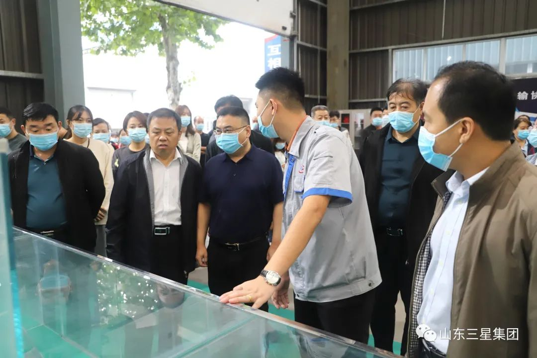 觀摩團(tuán)一行深入山東三星集團(tuán)輕量化物流裝備生產(chǎn)基地,實(shí)地了解企業(yè)產(chǎn)業(yè)布局、產(chǎn)能規(guī)模及智能制造發(fā)展模式,并著重探討了企業(yè)基層黨建工作思路和措施方法。