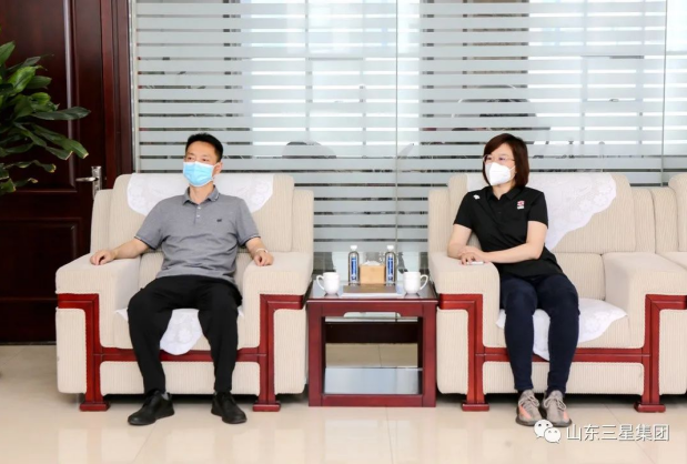 4月10日,鄒平市委常委、統(tǒng)戰(zhàn)部部長張欣來山東三星集團調(diào)研疫情防控及生產(chǎn)經(jīng)營情況。韓店鎮(zhèn)黨委書記邢錦凱,鎮(zhèn)黨委宣傳委員、統(tǒng)戰(zhàn)委員李寧陪同調(diào)研。山東三星集團董事長、總裁王亞群,總經(jīng)理王明星、常務(wù)副總經(jīng)理王明亮參加調(diào)研座談。