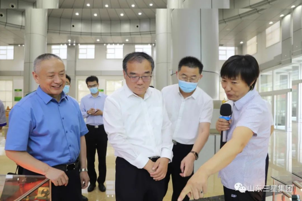 6月8日,鄒平市委書記呂明濤來山東三星集團調(diào)研指導工作。鄒平市委常委、市委辦公室主任王欣,市委常委、宣傳部部長、副市長商獻文;韓店鎮(zhèn)黨委書記邢錦凱,黨委副書記、鎮(zhèn)長魏傳梁等領(lǐng)導陪同調(diào)研。山東三星集團黨總支書記、老董事長王明峰接待調(diào)研領(lǐng)導。