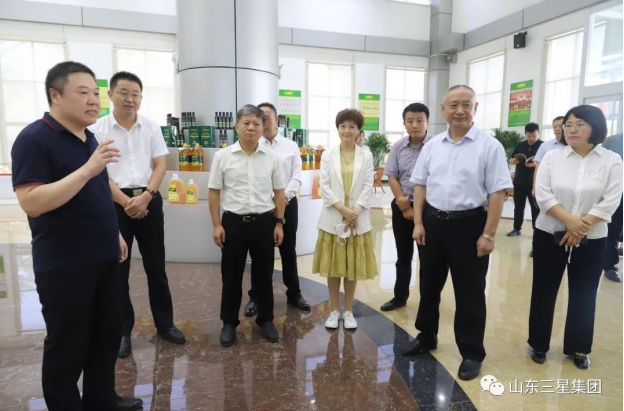 8月26日,山東省商務(wù)廳電子商務(wù)處處長朱希昕一行就2021年電子商務(wù)進(jìn)農(nóng)村綜合示范縣建設(shè)情況來山東三星集團(tuán)參觀調(diào)研。濱州市商務(wù)局副縣級(jí)干部馬明哲,鄒平市委常委、宣傳部部長、副市長商獻(xiàn)文參加活動(dòng)。山東三星集團(tuán)黨總支書記王明峰、長壽花食品常務(wù)副總經(jīng)理任在順接待調(diào)研領(lǐng)導(dǎo)一行。