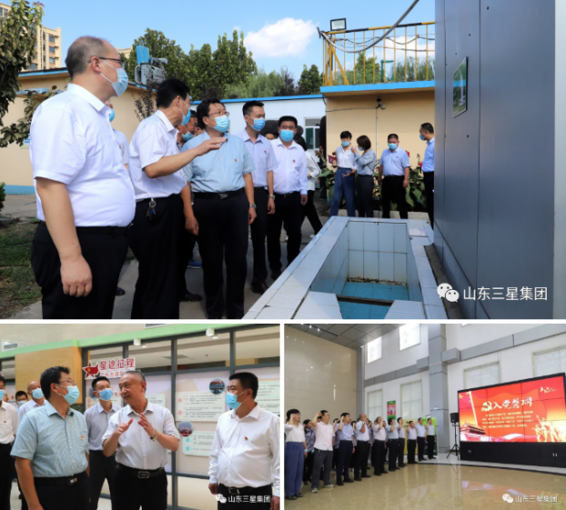 王明峰對來訪領(lǐng)導(dǎo)一行表示歡迎,對各級黨委政府長期以來給予企業(yè)生態(tài)環(huán)保工作的支持表示衷心感謝。他簡單介紹了集團雙業(yè)齊振運營及黨建情況,并從陣地建設(shè)、人才培優(yōu)、文化鑄魂等方面與來訪領(lǐng)導(dǎo)分享交流基層黨建成果經(jīng)驗。他表示,山東三星集團充分發(fā)揮黨總支在企業(yè)發(fā)展中的政治引領(lǐng)作用,把黨的建設(shè)貫穿于公司發(fā)展的各個環(huán)節(jié),讓“紅色動能”活躍于企業(yè)生產(chǎn)管理各個領(lǐng)域,用黨組織的創(chuàng)新發(fā)展推動生產(chǎn)由“制造”向“智造”轉(zhuǎn)變。在生態(tài)環(huán)保領(lǐng)域更是始終堅定“為當(dāng)?shù)匕傩諣I造良好環(huán)境”的信心和決心,扎實推動黨建工作與企業(yè)綠色健康發(fā)展的共建共贏,夯實筑牢企業(yè)實業(yè)報國、實干惠民的奮斗初心和責(zé)任使命。