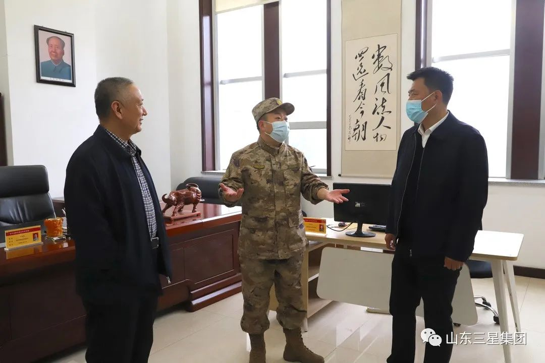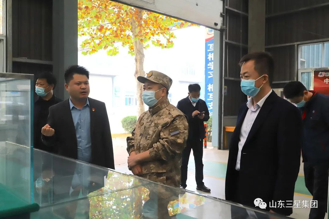 11月10日,鄒平市委常委、人武部部長胡燕龍來山東三星集團參觀調(diào)研,韓店鎮(zhèn)黨委副書記、鎮(zhèn)長魏傳梁參加活動。山東三星集團黨總支書記王明峰、綜合管理部總監(jiān)韓延庭接待調(diào)研領(lǐng)導一行。