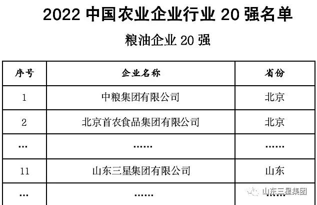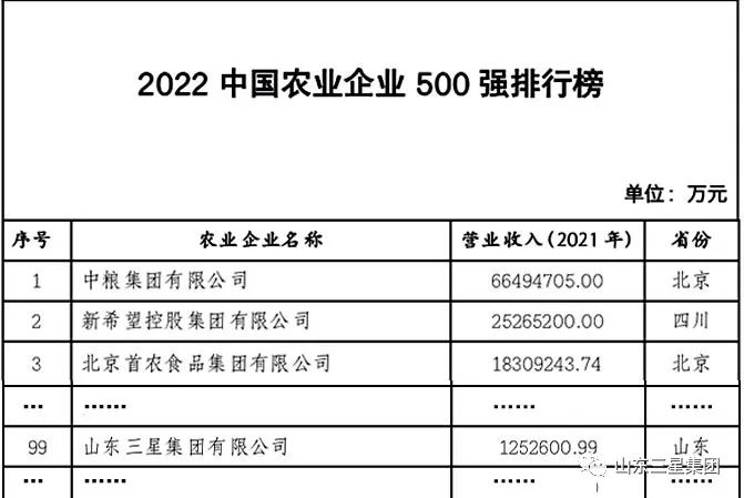 近期,“2022中國農(nóng)業(yè)企業(yè)500強(qiáng)”榜單出爐。山東三星集團(tuán)榮登榜單,位列99位,兼列“糧油企業(yè)20強(qiáng)”第11位。