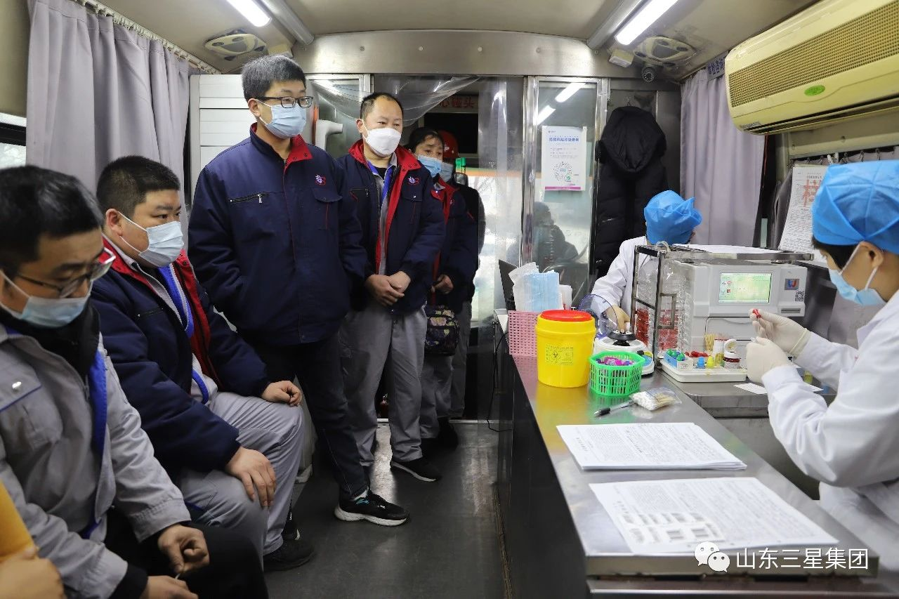 2月10日上午,濱州市中心血站愛心獻(xiàn)血車駛?cè)肷綎|三星集團(tuán)總部,這里早已站滿了等待獻(xiàn)血的三星員工。