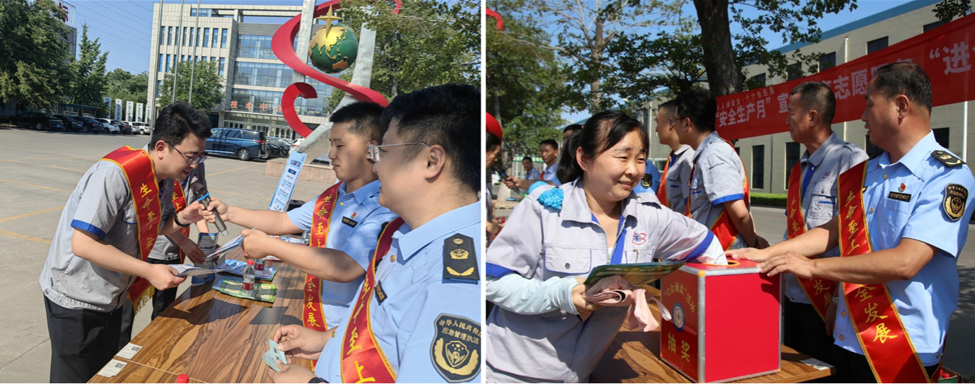 活動(dòng)現(xiàn)場,設(shè)置宣傳咨詢臺(tái),通過宣傳展板、宣傳橫幅、現(xiàn)場廣播等形式向員工宣傳普及安全知識(shí)和應(yīng)急技能。