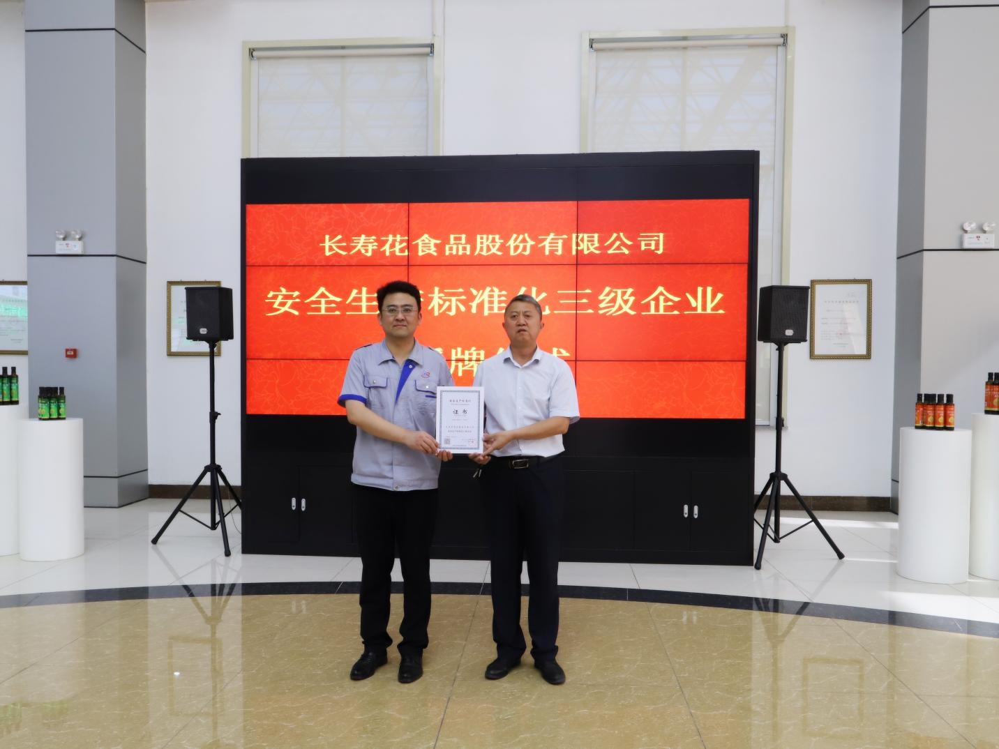 活動(dòng)舉辦期間,還舉行了安全生產(chǎn)生產(chǎn)標(biāo)準(zhǔn)化企業(yè)授牌儀式,為長壽花食品公司頒發(fā)獎(jiǎng)牌及證書。并到長壽花全自動(dòng)灌裝包裝生產(chǎn)車間、特色黨建展廳等地進(jìn)行觀摩交流,詳細(xì)了解企業(yè)黨建引領(lǐng)、生產(chǎn)運(yùn)營及安全管理等重點(diǎn)工作開展情況。