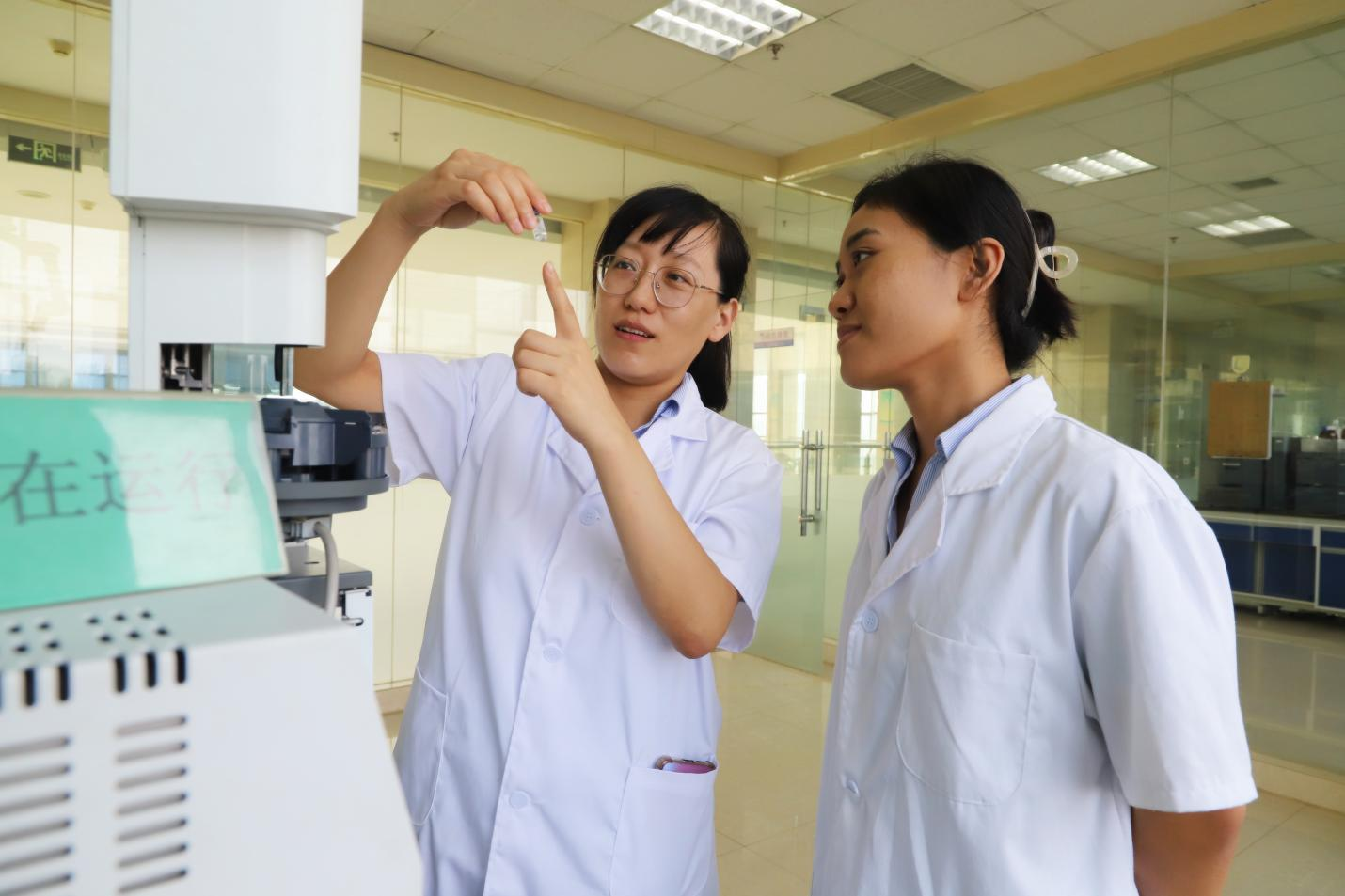 技術(shù)中心實(shí)驗(yàn)現(xiàn)場(chǎng),程芳園(左)與新員工楊新月正在就食用油中植物甾醇的含量檢測(cè)進(jìn)行指導(dǎo)交流,討論實(shí)驗(yàn)中的常見(jiàn)問(wèn)題和解決方法,分享自己的心得體會(huì)、工作經(jīng)驗(yàn),幫助新員工提高分析效率和準(zhǔn)確度。新老拍檔精誠(chéng)攜手、思想碰撞,點(diǎn)燃科技創(chuàng)新的火花。