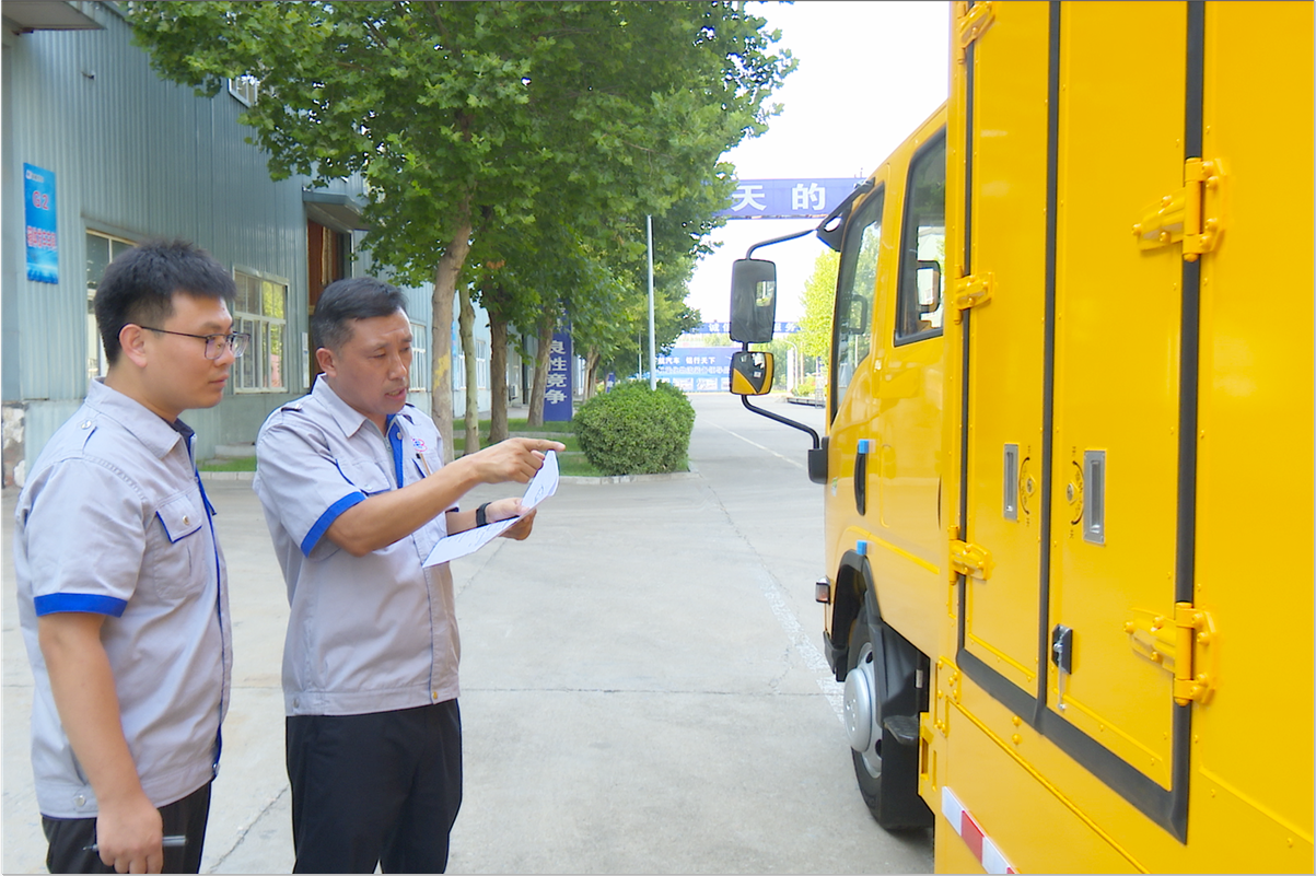 機(jī)械公司新型輕量化廂車(chē)前,技術(shù)總監(jiān)韓文來(lái)(右)向新員工孫恒杰重點(diǎn)講述新產(chǎn)品的性能指標(biāo)及有關(guān)事項(xiàng),手把手的教授,心與心的溝通,于言傳身教中,傳遞綠色低碳使命,凝練團(tuán)隊(duì)技術(shù)力量,帶動(dòng)新員工創(chuàng)新性、精準(zhǔn)化發(fā)展。