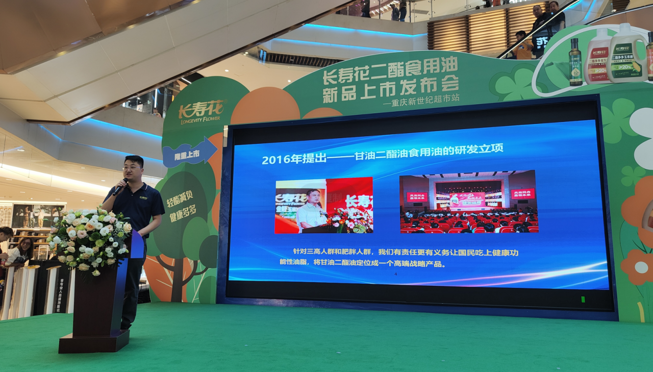 中秋國慶雙節(jié)前夕,長壽花全國各大區(qū)在重點城市陸續(xù)啟動了“甘油二酯油”上市活動,期間,重慶大區(qū)攜手重慶百貨大樓舉辦新品上市發(fā)布會。現(xiàn)場長壽花甘油二酯油系列產(chǎn)品悉數(shù)亮相,通過健康科普、互動問答等環(huán)節(jié),以形式多樣的活動為消費者帶來健康享受,感謝消費者的厚愛和支持。