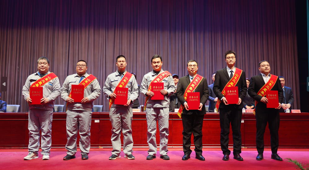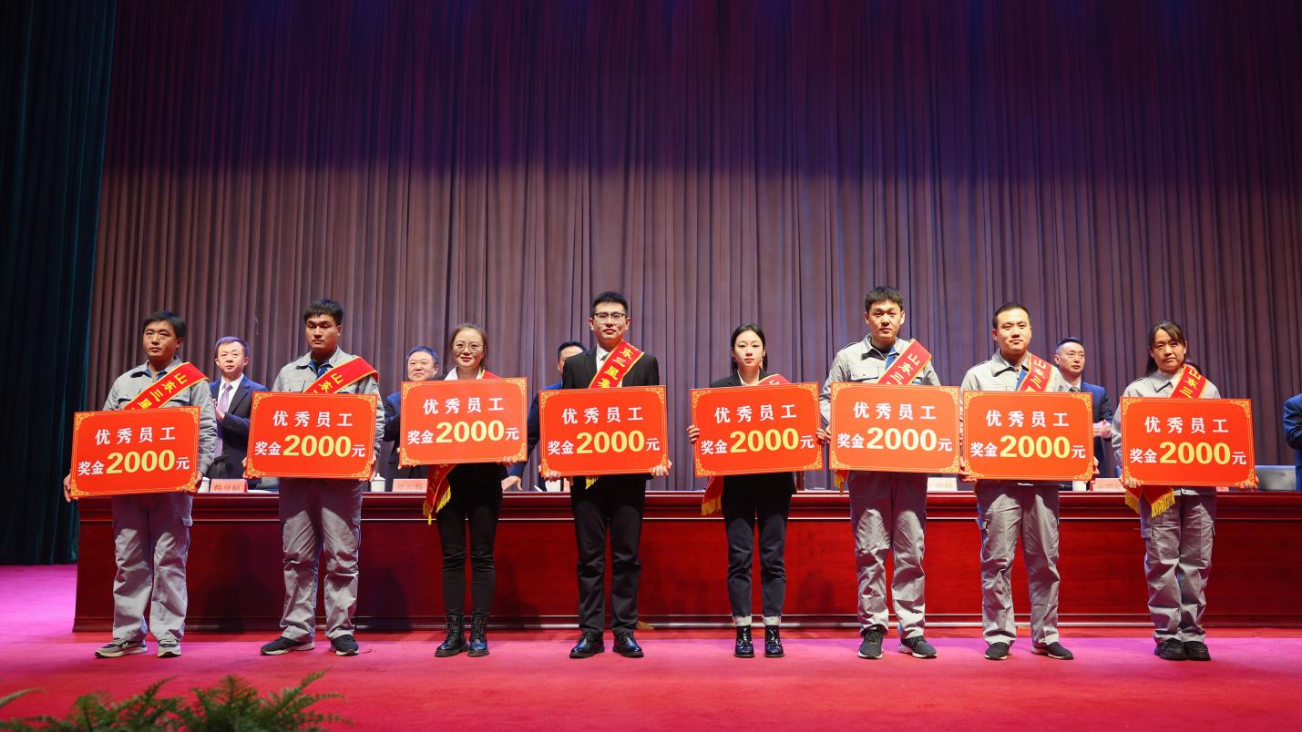 為表彰奮進典型,弘揚實干作風,集團常務(wù)副總經(jīng)理王明亮宣讀《關(guān)于表彰2023年度先進集體及個人的決定》,對安全生產(chǎn)先進單位、科技創(chuàng)新先進集體、突出貢獻單位、突出貢獻團隊、模范班集體、模范部室及成就獎、突出貢獻獎、優(yōu)秀管理獎、銷售十佳獎、優(yōu)秀黨員、優(yōu)秀員工及優(yōu)秀新員工予以表彰獎勵,重獎2023年在集團科技創(chuàng)新、生產(chǎn)管理、營銷拓展、項目攻堅等領(lǐng)域的27個先進集體和153余名先進個人。