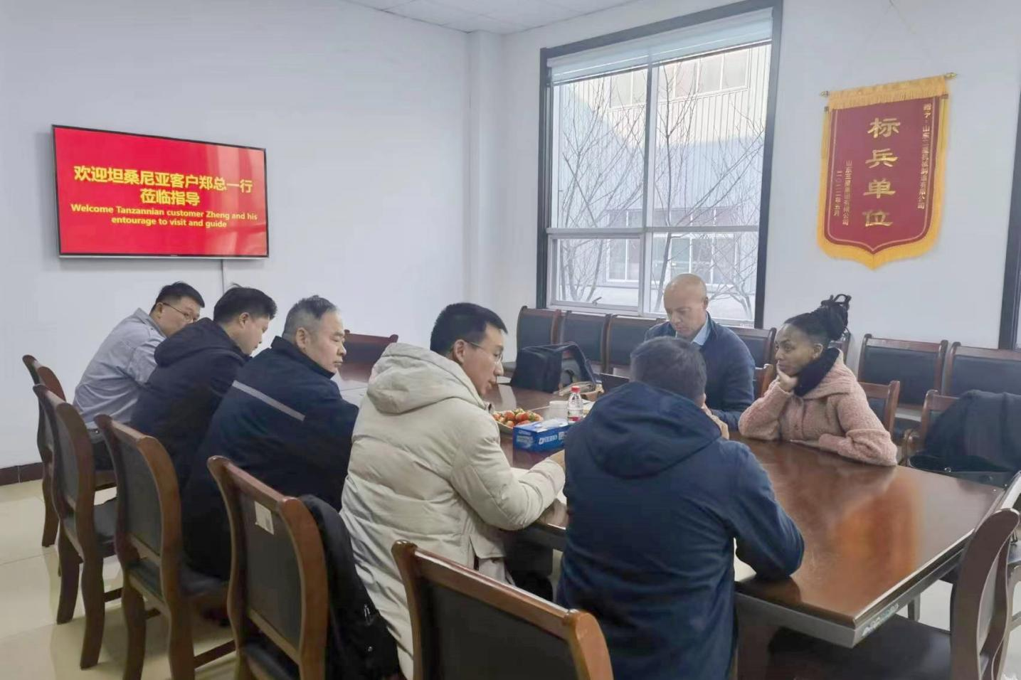 近日,坦桑尼亞客商一行來山東三星集團機械公司參觀考察,并就進一步深化合作進行座談交流。機械公司總經(jīng)理李前進、廂車事業(yè)部銷售經(jīng)理張迪、研發(fā)設(shè)計部經(jīng)理韓文來陪同接待。