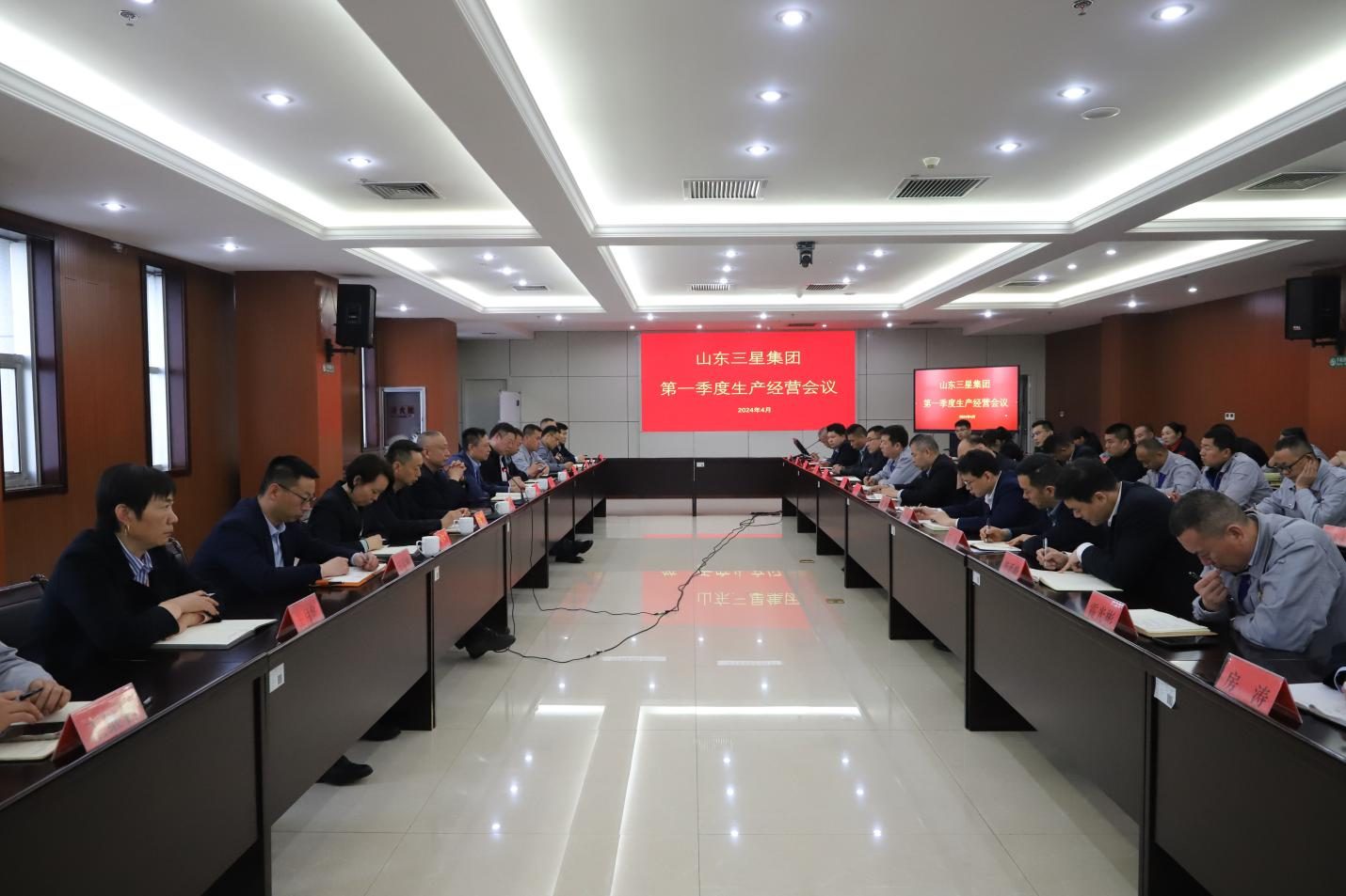 為全面總結(jié)2024年第一季度各單位生產(chǎn)經(jīng)營完成情況,推進(jìn)業(yè)績考評(píng)工作落地落實(shí),推動(dòng)第二季度各項(xiàng)工作再提升,4月3日,山東三星集團(tuán)召開第一季度生產(chǎn)經(jīng)營總結(jié)大會(huì),集團(tuán)董事會(huì)成員、集團(tuán)各部室負(fù)責(zé)人、各公司執(zhí)行經(jīng)理、銷售經(jīng)理、生產(chǎn)經(jīng)理及行政、儲(chǔ)運(yùn)負(fù)責(zé)人等參加會(huì)議,駐外公司以視頻會(huì)議形式參會(huì)。