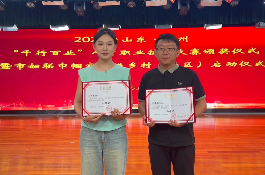 日前,2024年山東·濱州“千行百業(yè)”人才職業(yè)技能大賽頒獎(jiǎng)儀式在濱州舉行。長壽花電商運(yùn)營部主播劉迎春、韓東江作為企業(yè)代表參賽,在“電商直播”賽項(xiàng)中攬獲第一、二名,分別獲得大賽一等獎(jiǎng)、二等獎(jiǎng)的優(yōu)秀成績。