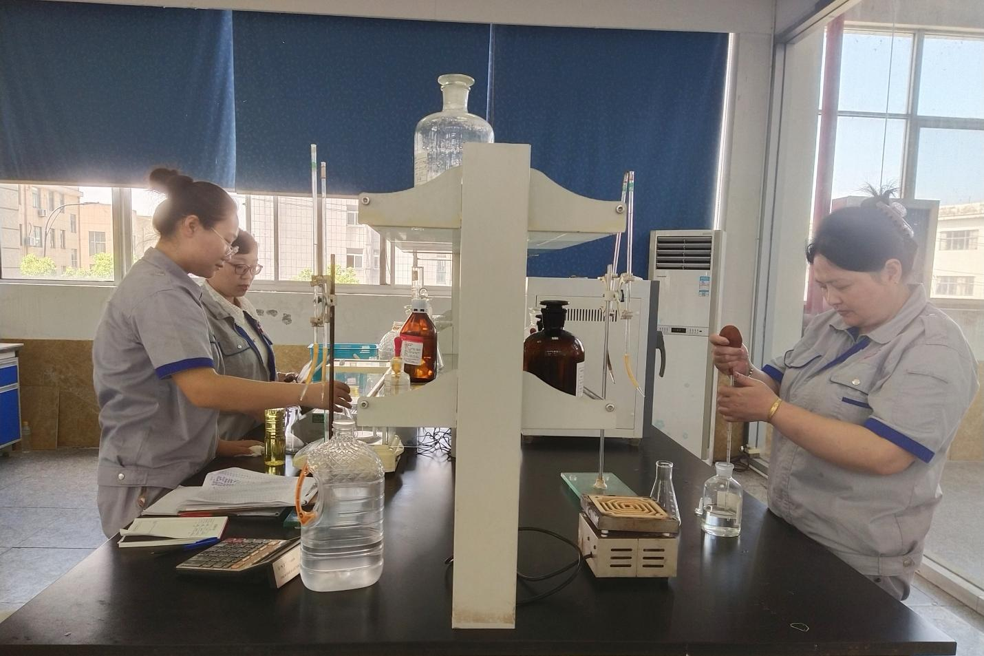 勤學(xué)苦練,技能過硬。隨著企業(yè)產(chǎn)業(yè)規(guī)模的日益發(fā)展壯大,質(zhì)檢科化驗室所承擔(dān)的工作量也日益繁重,她們積極克服困難,不辱使命,承擔(dān)起了公司的檢測化驗任務(wù),高效完成下達(dá)的各項指標(biāo)任務(wù)。身著干凈的廠服,炯炯有神的眼睛,說起話來都是心直口快的人,干起活來干脆利落,工作中,她們對外精細(xì)管理、強(qiáng)化協(xié)作,對內(nèi)相互學(xué)習(xí),共同進(jìn)步,不斷提高崗位技能和業(yè)務(wù)水平,推動團(tuán)隊綜合素質(zhì)的全面提高。