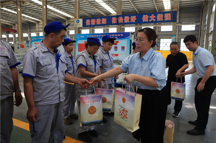 為進(jìn)一步做好職工夏季安全生產(chǎn)工作,為企業(yè)一線員工送去關(guān)懷與慰問,7月31日,鄒平市總工會黨組成員、副主席夏應(yīng)東,黨組成員馮學(xué)鳳代表市總工會到山東三星集團(tuán)開展“夏送清涼”慰問活動,為員工帶來防暑物資和關(guān)懷問候,山東三星集團(tuán)副總經(jīng)理韓延庭參加活動。