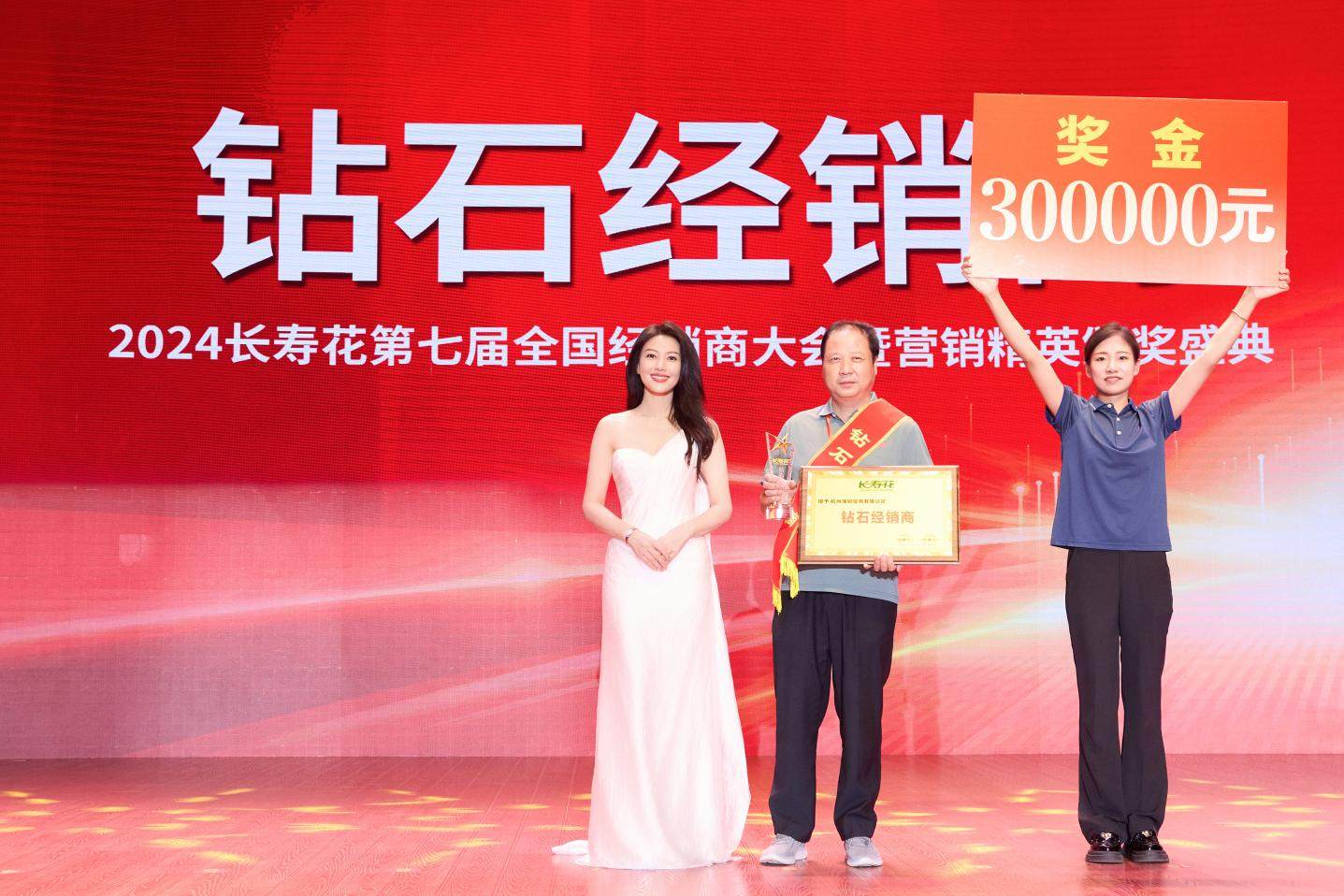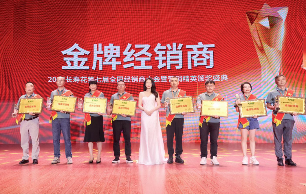 頒獎(jiǎng)盛典上,長壽花食用油代言人高圓圓為金牌經(jīng)銷商和鉆石經(jīng)銷商頒獎(jiǎng),并現(xiàn)場(chǎng)溫馨互動(dòng)。