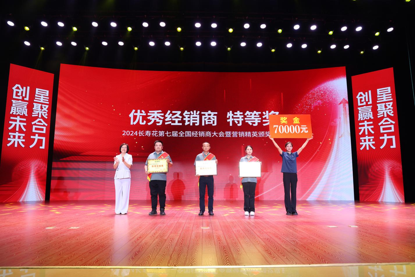 熱烈盛大的頒獎(jiǎng)盛典環(huán)節(jié),大會(huì)對(duì)鉆石經(jīng)銷商、金牌經(jīng)銷商,優(yōu)秀經(jīng)銷商、突出貢獻(xiàn)大區(qū)、優(yōu)秀大區(qū)及市場(chǎng)突破新銳經(jīng)理、新產(chǎn)品銷售先進(jìn)個(gè)人、優(yōu)秀辦事處主任、優(yōu)秀業(yè)務(wù)員、優(yōu)秀促銷員等17個(gè)團(tuán)隊(duì)、個(gè)人獎(jiǎng)項(xiàng)進(jìn)行了表彰獎(jiǎng)勵(lì)。