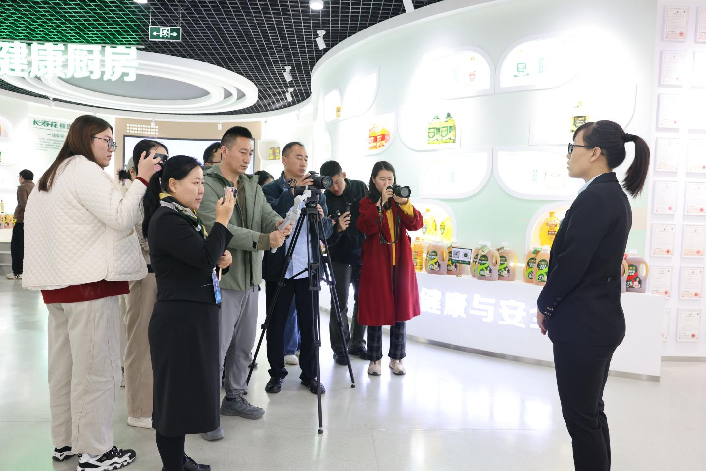 在集團(tuán)文化中心,工作人員向來訪媒體介紹了企業(yè)發(fā)展歷程、產(chǎn)業(yè)優(yōu)化升級及助力鄉(xiāng)村振興的創(chuàng)新舉措,尤其是長壽花食品在突破關(guān)鍵工藝技術(shù),創(chuàng)新引領(lǐng)健康油脂產(chǎn)業(yè)發(fā)展,推動甘油二酯食用油產(chǎn)業(yè)化運(yùn)營等方面成績斐然,展現(xiàn)出強(qiáng)大的創(chuàng)新活力和發(fā)展動力。媒體記者用鏡頭和筆觸聚焦集團(tuán)發(fā)展動態(tài),記錄企業(yè)堅持走高質(zhì)量發(fā)展道路、不斷改革創(chuàng)新的生動實踐。