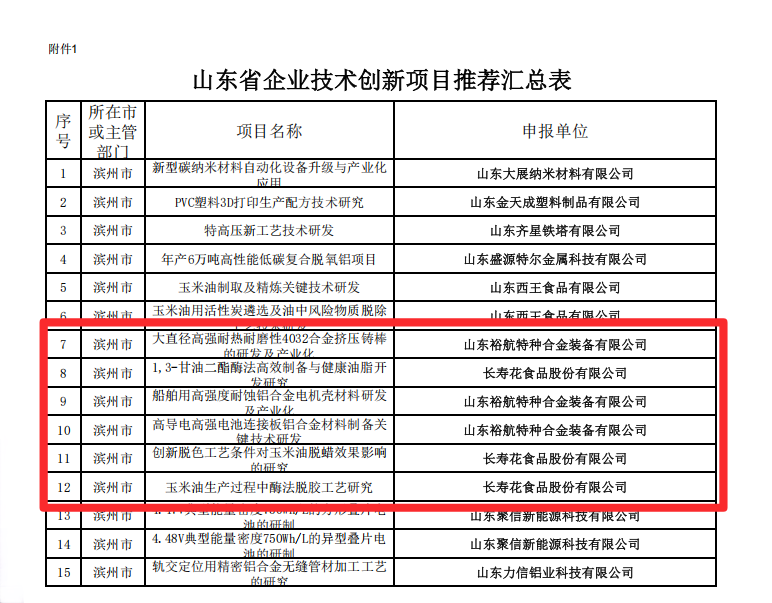 近日,山東省工業(yè)和信息化廳公布2025年山東省企業(yè)技術(shù)創(chuàng)新項(xiàng)目計劃(第一批),憑借深厚的技術(shù)積累與創(chuàng)新實(shí)力,山東三星集團(tuán)旗下長壽花食品、裕航合金共六個項(xiàng)目成功入選,為企業(yè)創(chuàng)新發(fā)展注入強(qiáng)勁動能。