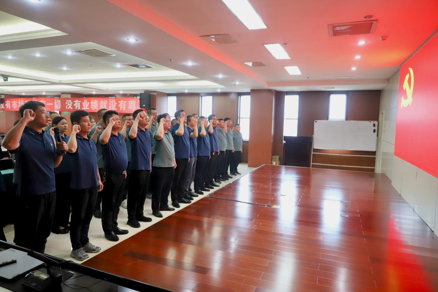 活動最后,黨員們緊握右拳,重溫入黨誓詞,面向黨旗,莊嚴宣誓。鏗鏘有力的誓言在會場內回響,表達了集團廣大黨員同志立足崗位、廉潔奉公、為企業(yè)高質量發(fā)展貢獻力量的決心。