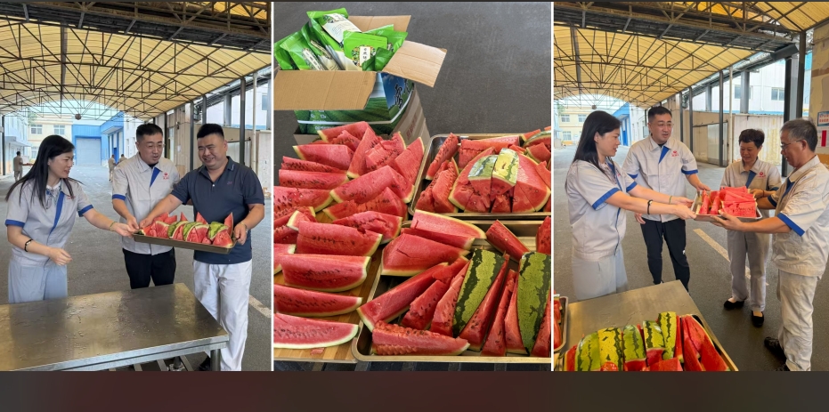 活動現(xiàn)場,公司采購的降溫物資整齊擺放,不僅有清甜多汁的西瓜,還有綠悠悠的解渴涼茶,煙臺公司執(zhí)行總經(jīng)理王洋、辦公室主任劉咚梅為大家送上解暑物品的同時,還叮囑各車間負責人積極做好防范措施,科學防暑降溫,保障全員以健康的身心和飽滿的精神投入到新一階段的生產(chǎn)工作中。